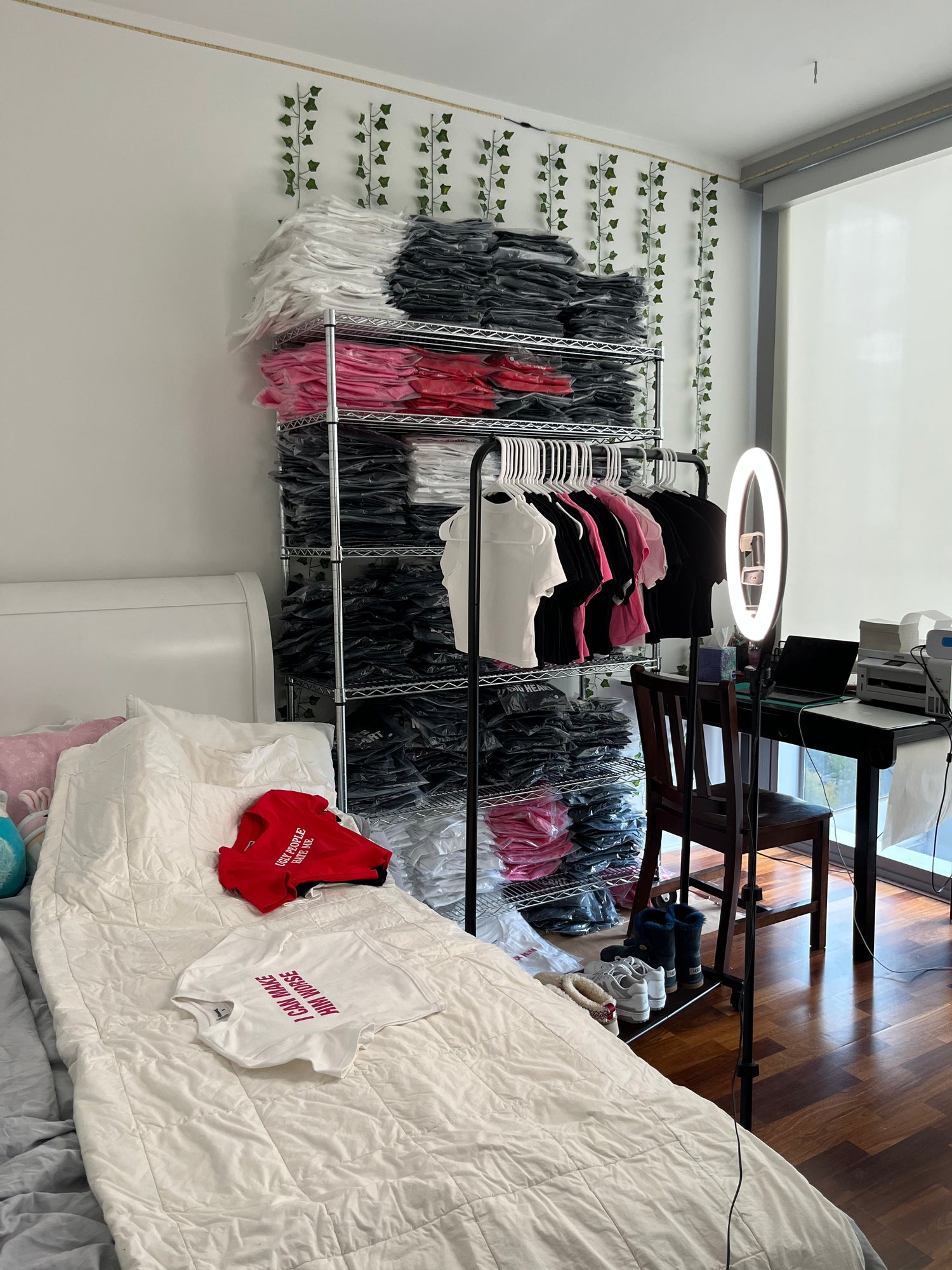 Namely inspired by 2000s fashion with icons such as Paris Hilton, Bella Hadid, Britney Spears, and more, I hand craft, print, and design all my shirts to be perfectly hot and hilarious.