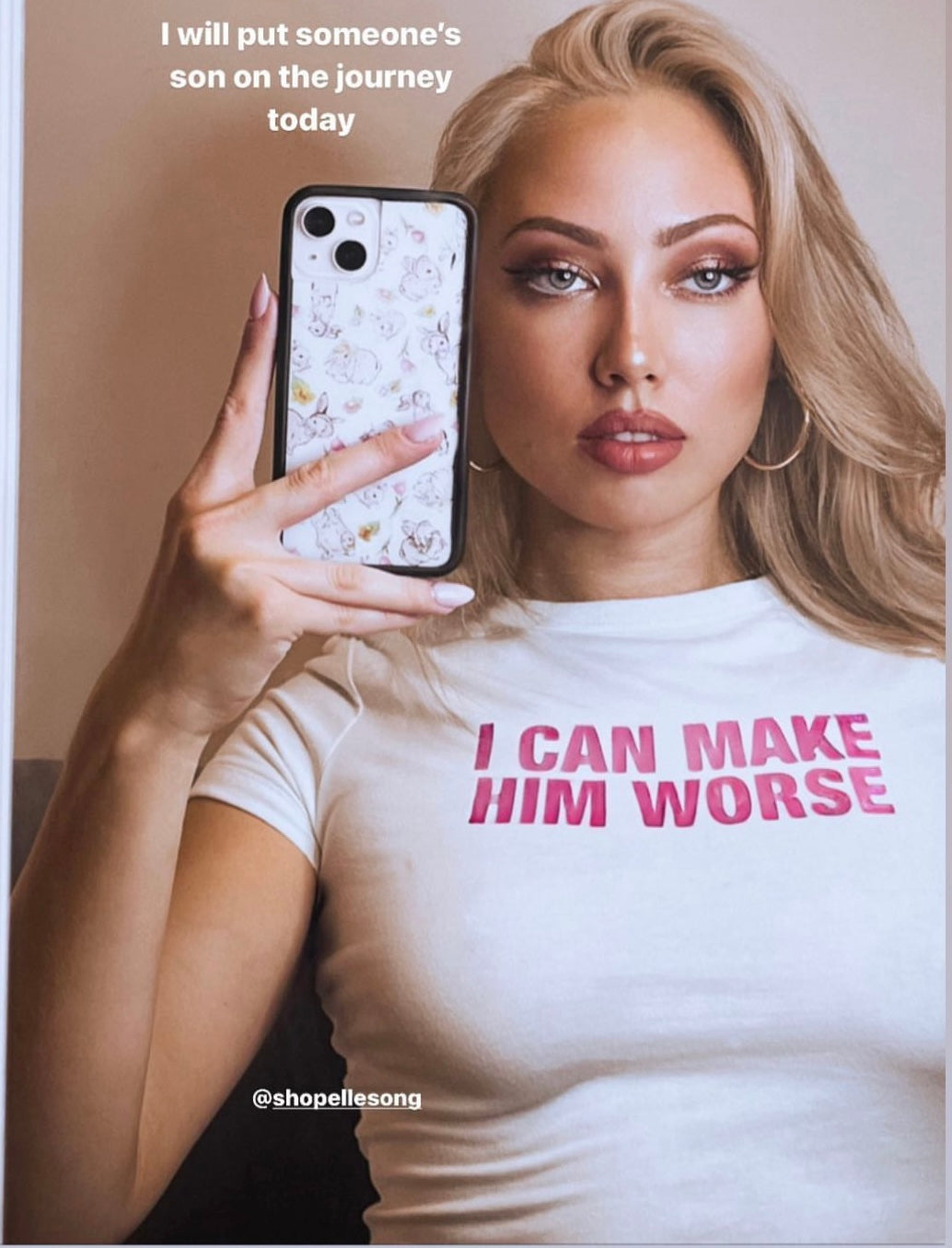 Namely inspired by 2000s fashion with icons such as Paris Hilton, Bella Hadid, Britney Spears, and more, I hand craft, print, and design all my shirts to be perfectly hot and hilarious.